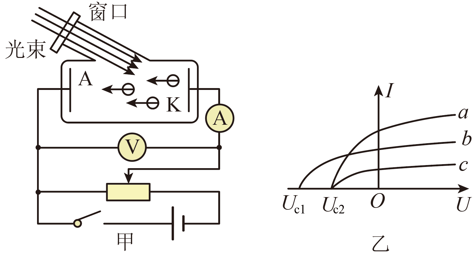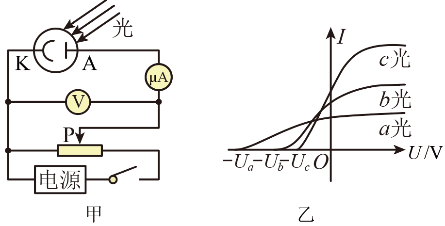 | C.图甲所示电路中,当电压增大到一定数值时,电流表的示数将达到饱和电流 |