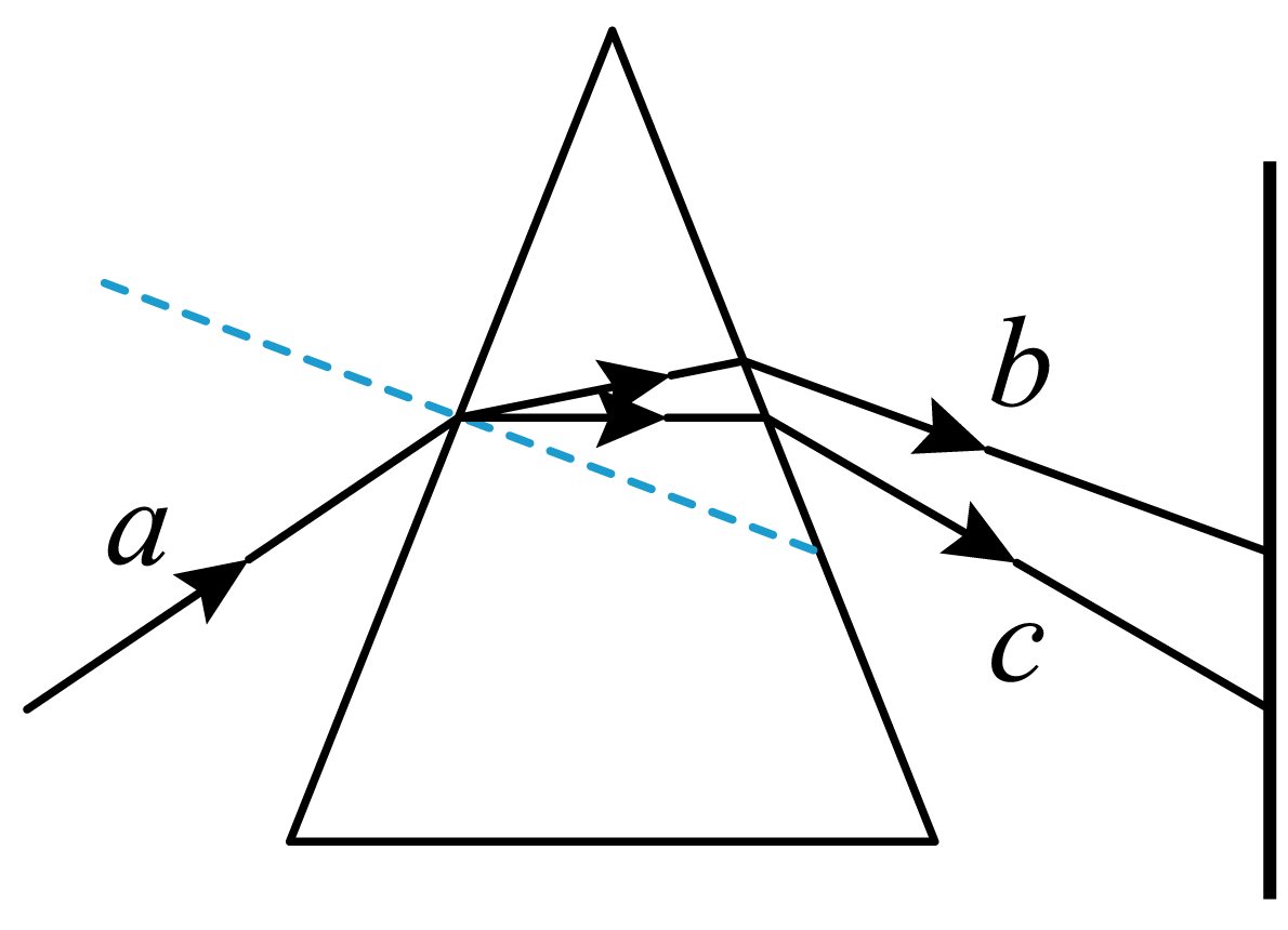 | D.减小a光的入射角度,各种色光会在光屏上依次消失,最先消失的是b光 |