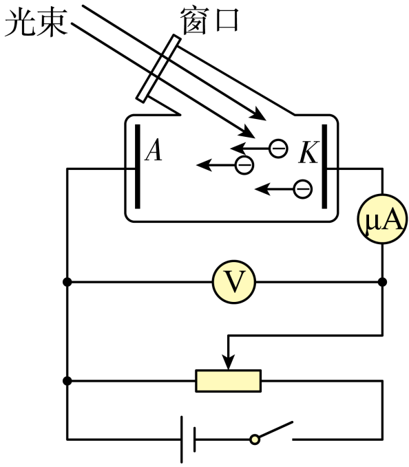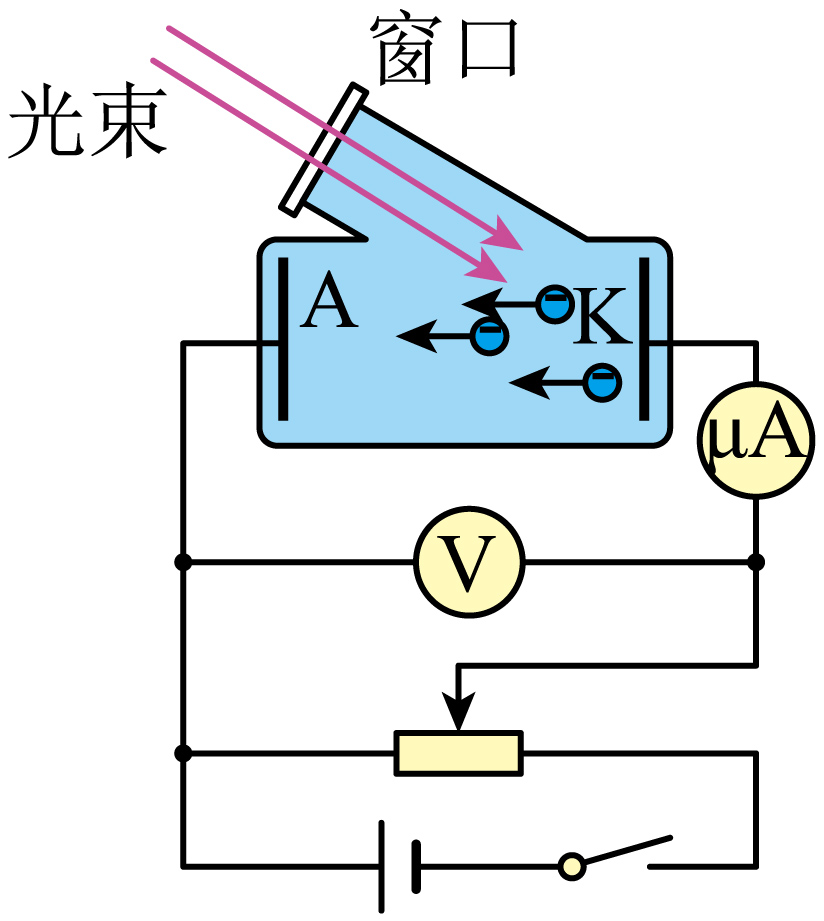 | A.若减小入射光强度,电路中可能没有光电流 |