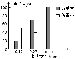| D.根据本实验,培养脱毒苗时茎尖的适宜大小为0.60mm |