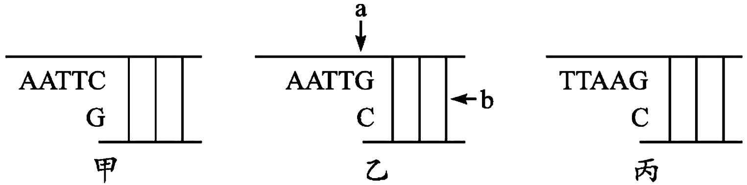 | B.甲、乙具有相同的黏性末端,可形成重组DNA分子,但甲、丙之间不能 |